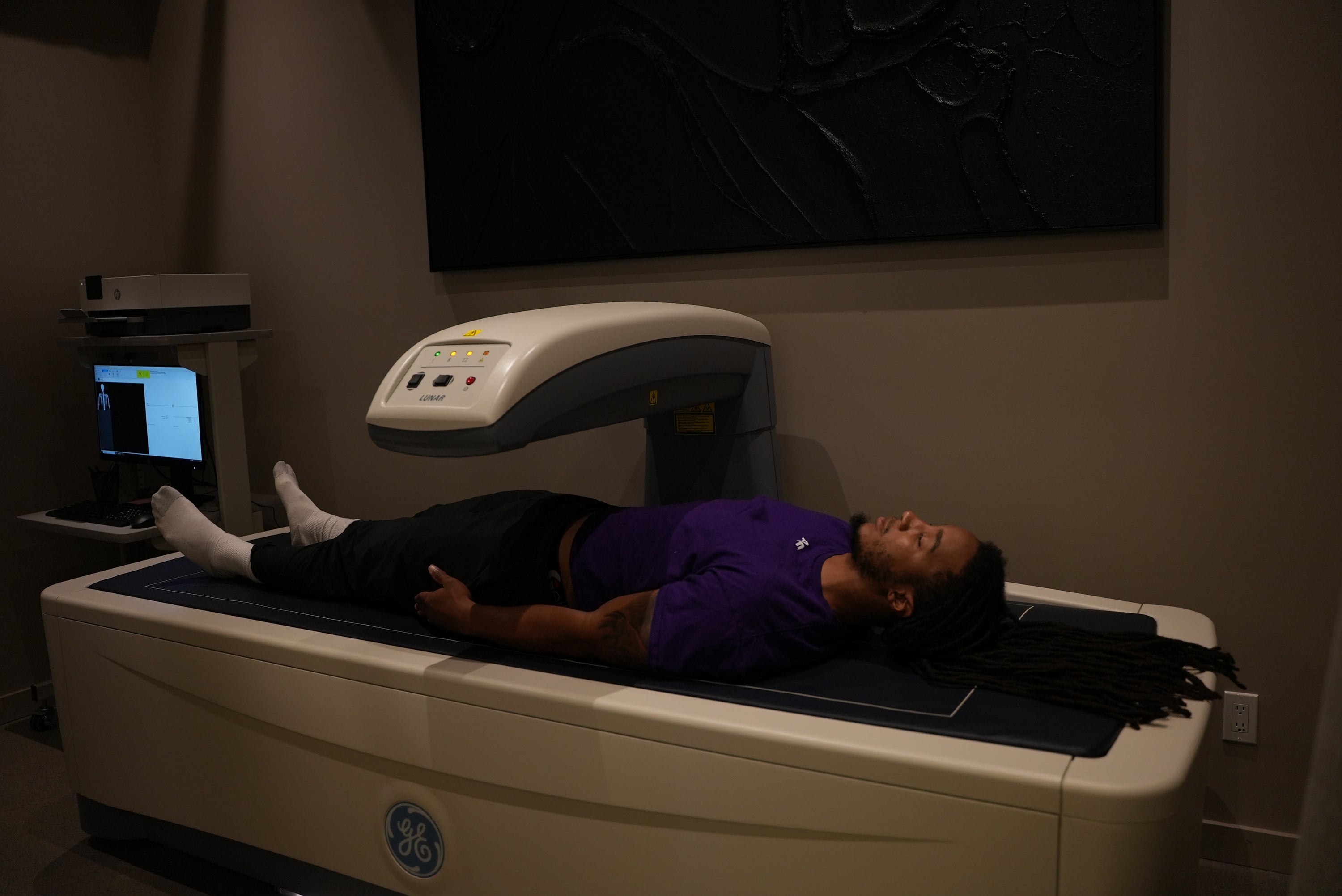 Next, you’ll lie face up on the scanner for about five minutes while it captures a detailed snapshot of your body.